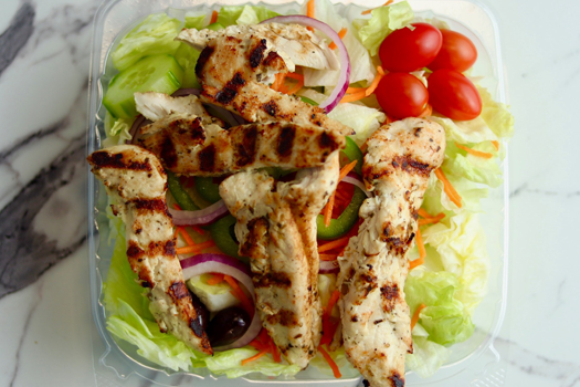 | Greek Chicken Wrap Grilled chicken, Greek salad with Greek dressing |